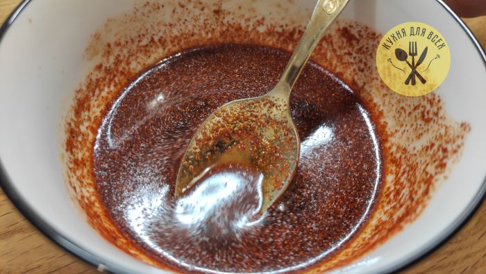 В это время сделаем соус. Смешиваем соевый соус, сахар и сладкую паприку.
