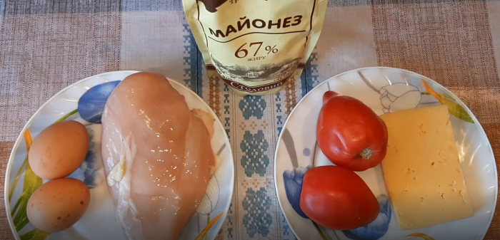Куриное филе отварить до готовности в подсоленной воде, обычно филе готово через 25-30 минут. Яйца отварить до готовности в течение 8 – 10 минут. Филе, яйца, помидоры и сыр порезать мелким кубиком. Все ингредиенты соединить в глубокой миске, добавить соль, майонез и хорошо перемешать. Салат выложить на блюдо или в салатник и сразу подать к столу. Несмотря на то, что этот салат состоит из нескольких ингредиентов, он получается очень вкусным, гости съедают его первым. Салат с куриным филе, помидорами и сыром готов! Более подробный рецепт приготовления салата смотрите на видео. Приятного аппетита!