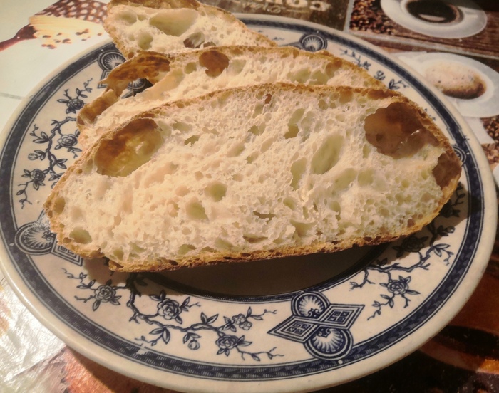 За основу этого рецепта взят итальянский, деревенский хлеб Pagnotta. Рецепт был упрощён - исключена холодная опара (бига) и сокращено время выбраживания. Данный вид хлеба готовится на основе теста 90% гидратации. Тесто достаточно липкое, но при правильном вымешивании и температуре теста с ним несложно работать. Для замеса используется планетарный миксер и вода с температурой 8-10С. При ручном замесе получится совсем другой хлеб. Это мягкий, крупнопористый и очень ароматный каравай. Он удобен тем, что его не надо печь ежедневно. Единственное, что он требует муку с высоким содержанием клейковины. Желательно чтобы эта мука содержала 11-12% белка.