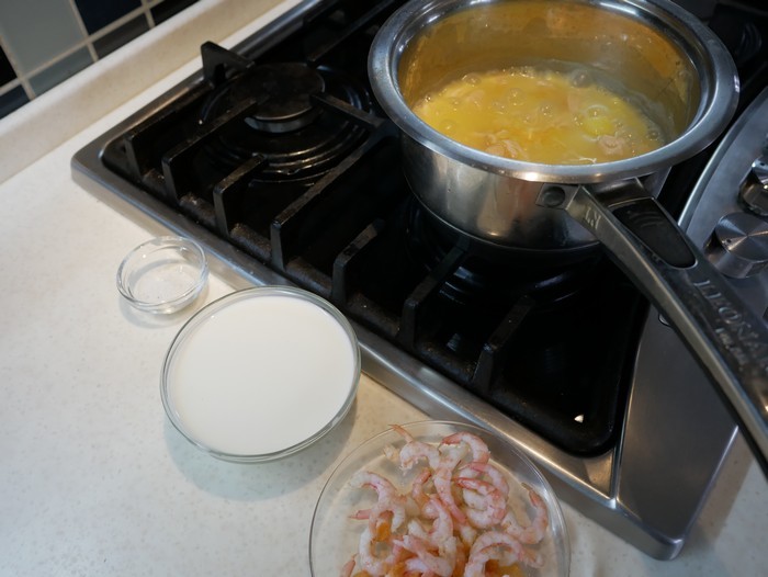 Отмечу что это один из любимых моих супов. Отдельную радость мне доставляет икра, которая иногда бывает в креветках, ее так же добавляем в суп.