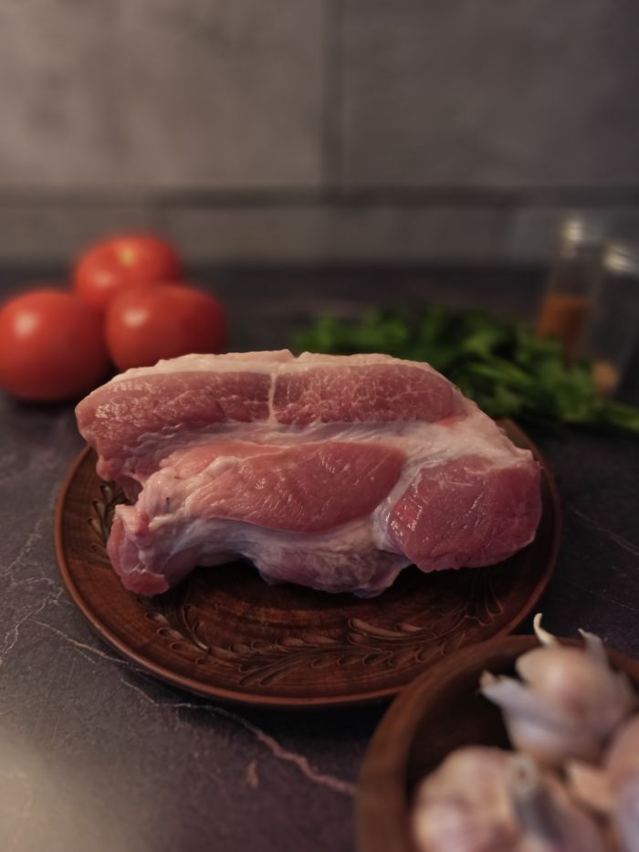 Берем кусок свинины без кости, у меня это килограммовый окорок с жирком (люблю жирок).