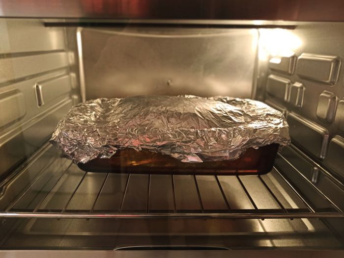 По истечению 1,5 часов, открываем фольгу, поливаем выделившимся бульоном и ставим в духовку еще на 15 минут на 210°.