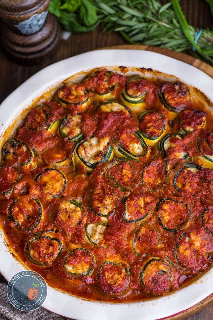 - Если все сделано верно, то рулеты не потеряют форму и не раскрутятся. Также, не забудьте отжать цукини- иначе они дадут лишнюю воду и в итоге все будет плавать в жидком соусе.