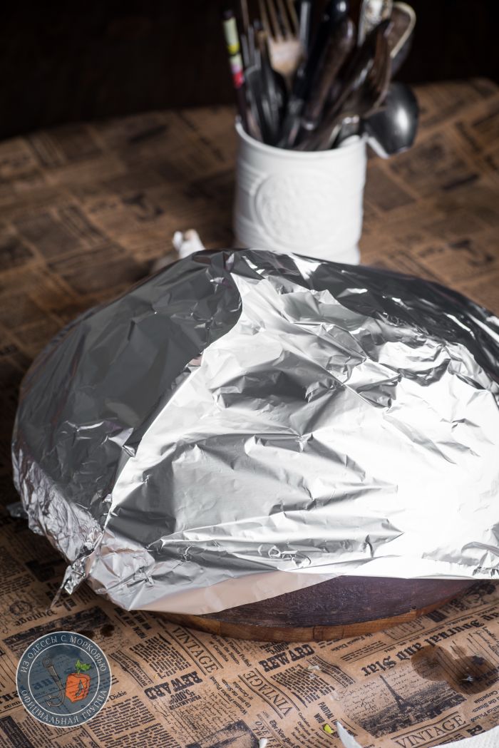 - Накрыть форму для запекания крышкой или фольгой в пару слоев.