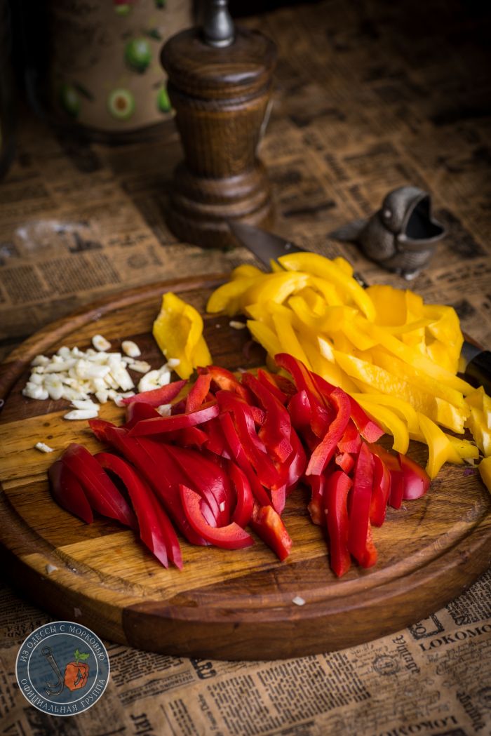 - - по одному сладком перцу. У меня был желтый и красный. Если брать разных цветов- будет еще и красиво