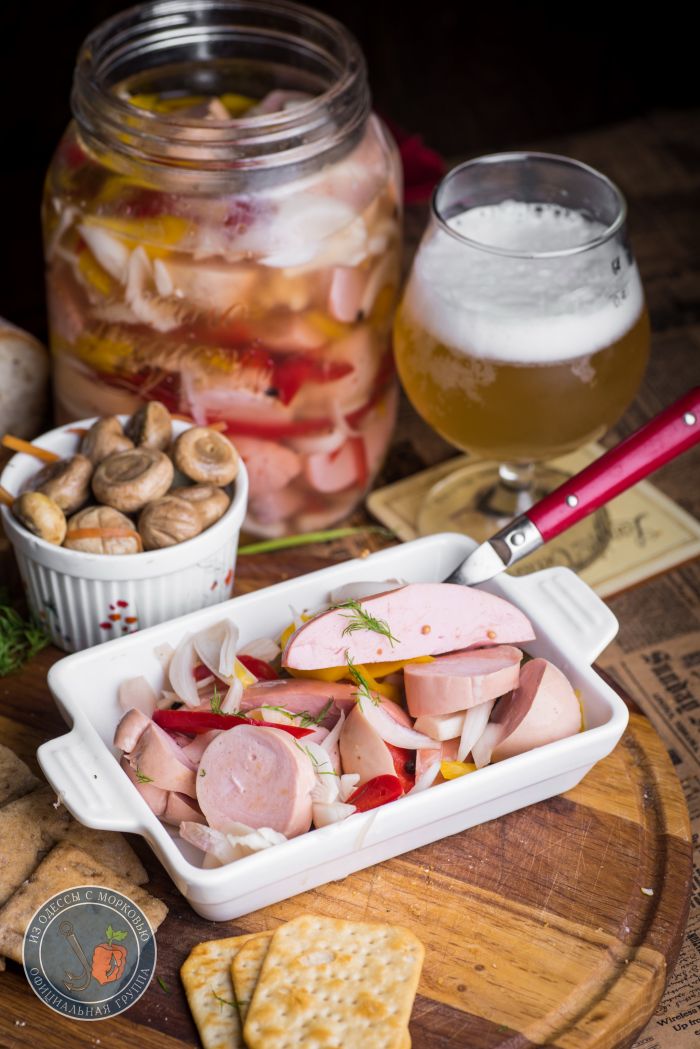 Я прошерстил приличное количество чешского сегмента интернета на предмет данного рецепта. Вариантов достаточно много, но все они отличаются незначительно. Плюс-минус варьируются пряности, пляшет концентрация уксуса\сахара и овощного наполнения. Есть минимал варианты- только сардельки, маринад и лук, а есть и побогаче. Также варьируется способ нарезки: сардельки надрезают вдоль пополам, как книгу, вставляя внутрь перец, кислый огурец, лук и т.д. Либо просто режут кружками или вдоль. Такой вариант мне импонирует больше, т.к он практичнее- готовое блюдо уже не надо резать- достаточно просто достать вилкой и оно лучше маринуется. В итоге я выбрал все, что мне нравится из разных рецептов и получилось, что получилось. Короче, готовим Утопцев.