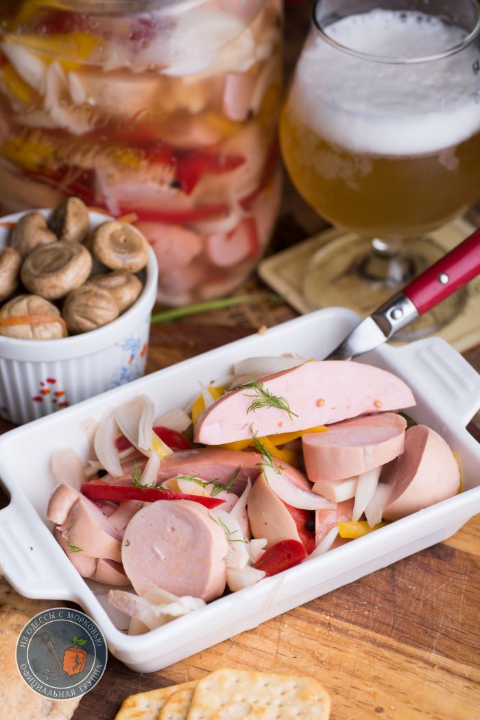 Выводы: еще одно блюдо в копилку баночной закуси. Достал, накидал себе в пиалу и вот тебе закусь или добавка к традиционной картошке, каше или яичнице. А еще с этим, как в случае с маринованными яйцами, можно пить пиво. В общем это блюдо не разрывает кулинарных горизонтов и не потрясает столпы необычного вкуса, но вполне заслуживает место быть. У этого блюда есть свои любители и противники. Я сейчас говорю о нелюбителях всего в кисло-сладком уксусном маринаде. Но если вы из поклонников такого- добро пожаловать в клуб.