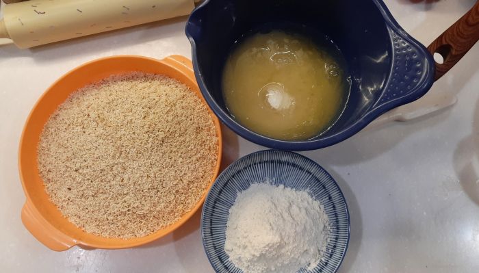 Сначала надо разобраться с миндалем - это занимает время. Миндаль обжарить на сковороде (снимать кожицу не надо). Измельчить его в блендере или на тёрке.