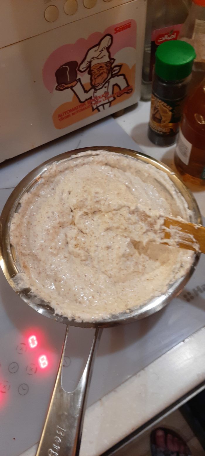 И начинаем прогревать эту массу постоянно помешивая и не давая ей пригореть. Задача- прогреть это все до 80 градусов (будет отходить от дна кастрюльки). Я немножко передержала массу на огне, она стала слишком густой.