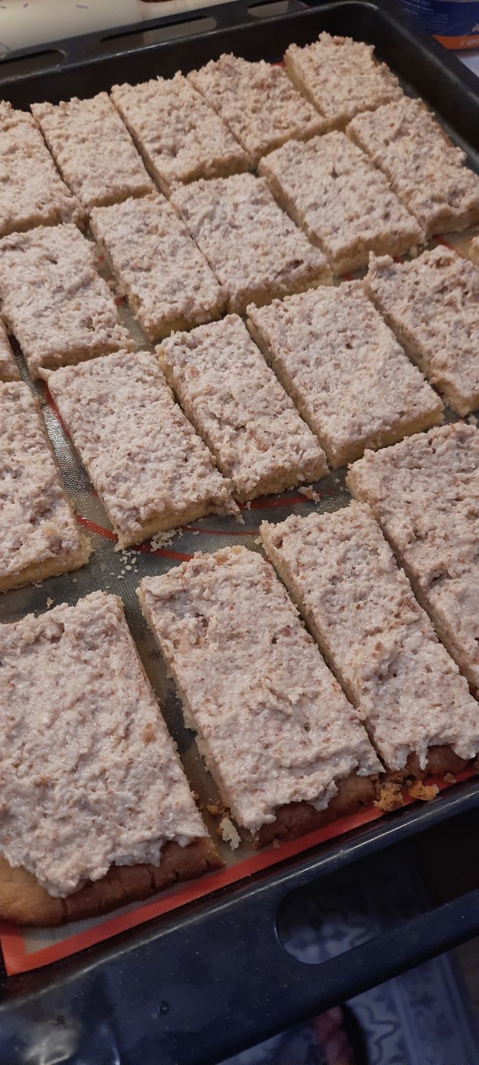 Итак, по порядку. Пирожное состоит из песочного основания и ореховой верхушки.