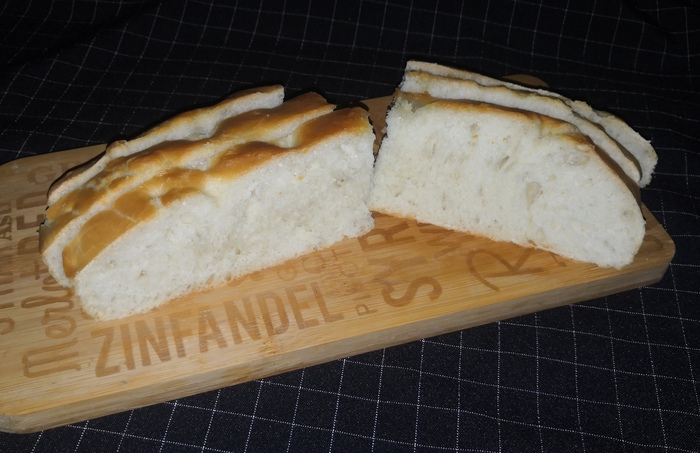 Очень простой рецепт из книги Кэрол Филд "Фокачча". Это вариант фокаччи отличается использованием достаточно большого количества лёгкого оливкового масла. В оригинале это лигурийское масло. Найти такое даже сегодня довольно проблематично, поэтому смело используйте любое, качественное оливковое масло. Я использовал масло холодного отжима. Помимо этого используется сухое белое вино. Рекомендую использовать кислое вино, вкус получается ещё лучше.