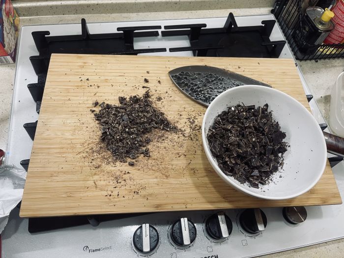 Мороженное будет шоколадным, поэтому крошим шоколад