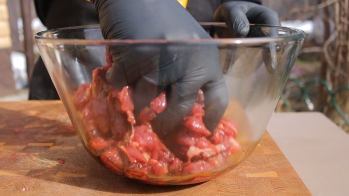 Начинаем подготовку с мясной составляющей, это говядина. Чтобы мясо получилось мягким его необходимо нарезать нетолстой соломкой. По отрубам для данного блюда лучше всего подойдёт филе, шея или огузок. Сегодня я использую шейный отруб. Перекладываем мясо в глубокую миску и немного подмариновываем его, добавив свежемолотый перец. И 3-4 ст.л. соевого соуса. Перемешиваем всё вместе и отставляем в сторону.