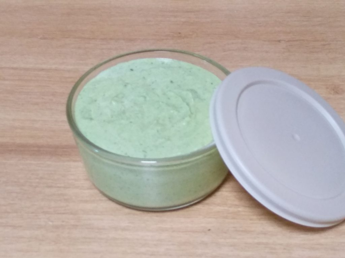 Надо смешать греческий йогурт и соус песто и убрать в холодильник.