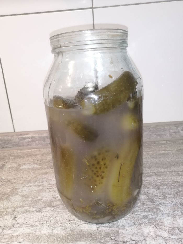 Считаю необходимым зафиксировать рецепт засолки огурцов, как делает моя мама. В трехлитровую банку огурцов, закладываем огурцы, с отрезанными кончиками. Сверху и снизу внутри банки обязательные ингредиенты - укроп, чеснок, хрен. Три столовых ложки с верхом, соли растворяем в любой емкости, меньшего объема чем трехлитровая банка, водой из под крана. Выливаем рассол в банку с огурцами и доводим до полной банки водой из под крана. Накрываем капроновой крышкой и ставим в прохладное , не жаркое место. Мама ставит в погреб. На три-четыре дня. Затем из банки сливаем рассол в кастрюлю, кипятим и заливаем горячим опять в банку с огурцами, прям с плиты. Закатываем металлической крышкой и спускаем в погреб на хранение. От себя добавлю. Огурцы получаются как из бочки. В мутном рассоле , ядреные, кисло-соленые, хрустящие, с приятным тонким вкусом. При хранении двух лет, свойства и вкусовые качества не теряются. Иногда приходится хранить в квартире при 25 градусах поболее, чем месяц-ничего не происходит. Это рецепт моей бабушки. А может быть и раньше. Остается безызменным много лет.