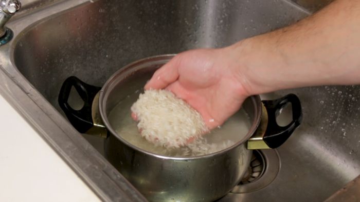 Пока курица маринуется промываем 500 гр. риса под проточной водой. Сорт риса, в этот раз, я выбрал басмати. Промываем его несколько раз, пока вода не будет оставаться прозрачной.