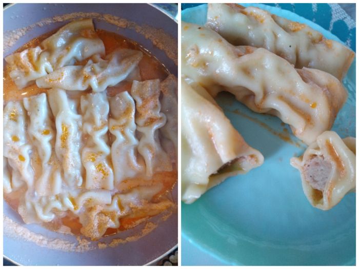 На сковороду все не влезло и еще фарш остался. Этот лоток пойдёт в духовку.