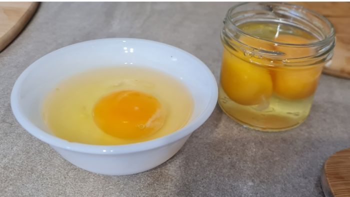 Готовим яйца - для каждой порции разбиваем в отдельную ёмкость, стараясь не разбить желток. В этот раз будет для одной порции - 1 яйцо, для другой - 2.