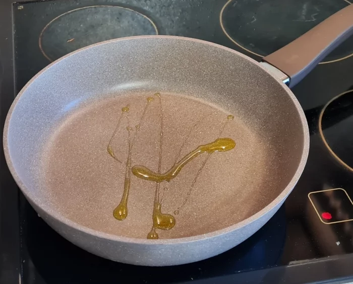 На сковороду плескаем масла и разогреваем на среднем огне. С маслом не борщим, будет ещё сливочное.