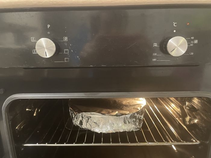 Затем сверху в фольгу на 2 слоя и в разогретую духовку, повыше. Температура 220 градусов и на 1 час 30 минут.