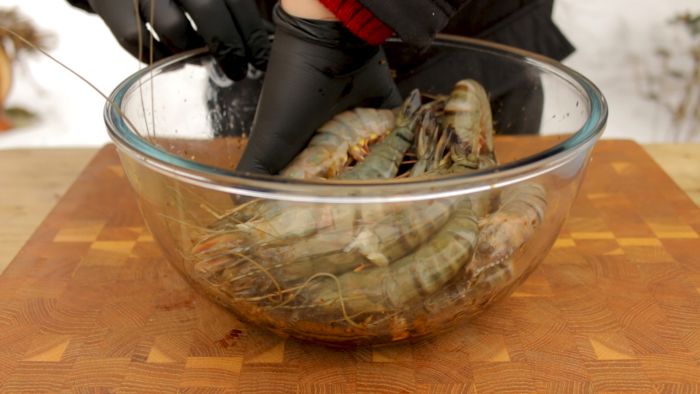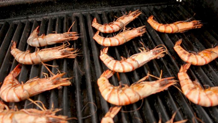 Для приготовления креветок на гриле разжигаем гриль и разогреваем его до температуры от 160 до 180 градусов. Выкладываем на него часть креветок. Обжариваем их по 2 минуты с каждой стороны и снимаем с гриля, чтобы они получились максимально сочные и вкусные.
