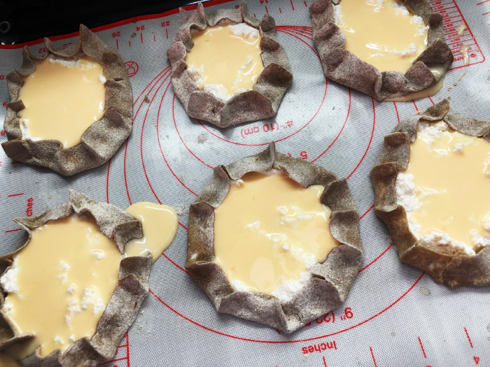 Когда калитки готовы к отправке в духовку, необходимо полить начинку «болтушкой». По полторы столовой ложки на одну калитку будет достаточно. Если что-то протекло — не страшно, в процессе запекания протечет в любом случае.