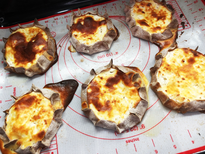 Важно: готовые калитки лучше сразу отправлять на противень, в идеале на силиконовую подкладку, чтобы они не прилипли. В прошлый раз, когда готовил калитки на большую компанию, складывал их на поднос покрытый пергаментом, потом на этом же пергаменте запек. Дно калиток приклеилось к пергаменту и есть было неудобно.