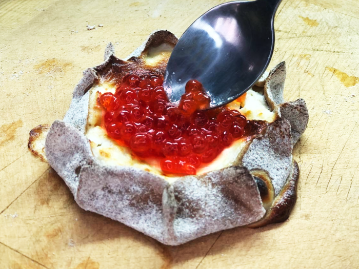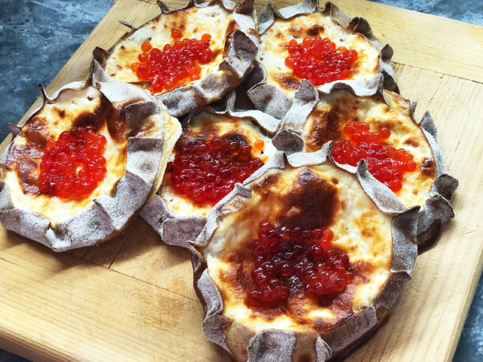 Подаем калитки с горячим чаем, желательно с травами и ягодами и наслаждаемся необычным сочетанием творога и икры!