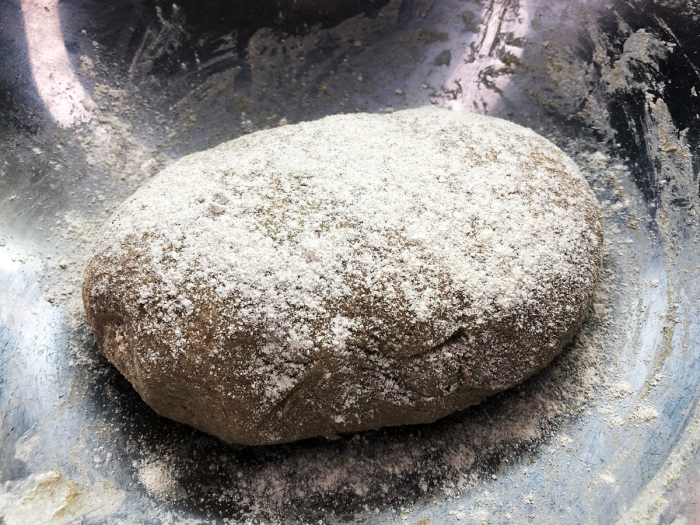 Вымешиваем тесто до полной однородности и плотности пластилина. Если тесто перестало липнуть к рукам, значит все идёт как надо и муки достаточно. Оставляем тесто в покое минут на 20, тем временем, готовим начинку.