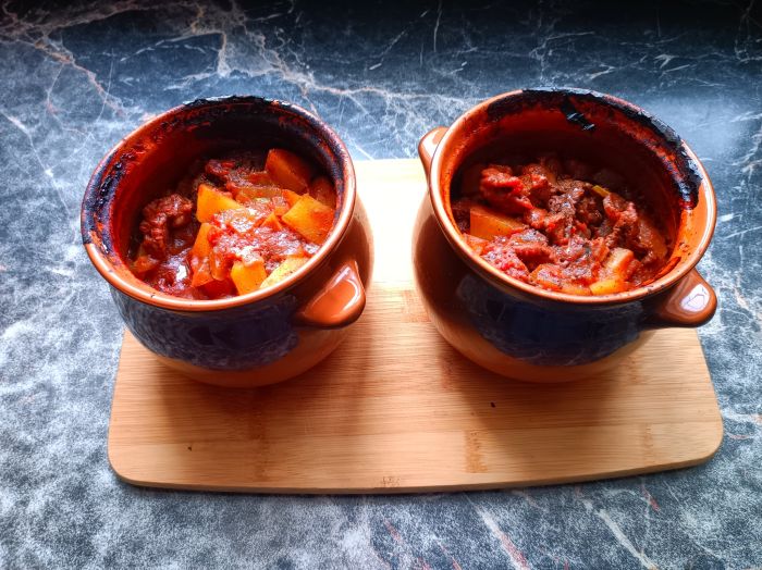 В общем, всё просто, готовится быстро, результат великолепный и самое главное, он расширяет ассортимент блюд, доступных к приготовлению на мангале. Мясо получается как запечёное, нежное и мягкое, даже если использовалось с прожилками. Не бойтесь импровизировать, тут нечего испортить, разве что передержать жаркое в углях. Но по моему опыту, за 40-50 минут оно готовится идеально, а если что-то на дне и пригорит, то это не даёт неприятного вкуса всему блюду. Если вдруг вы не рассчитали с углями и картошка получилась с сырцой, жаркое можно дожарить на сковородке и снова сложить в горшки, чтобы показать домашним, кто здесь реальный шеф-повар.