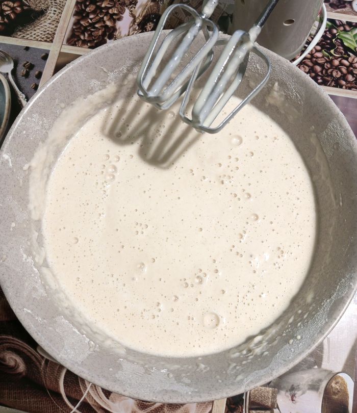 Тесто пойдёт пузырьками и теперь можно расслабиться и дать постоять ему минут десять.