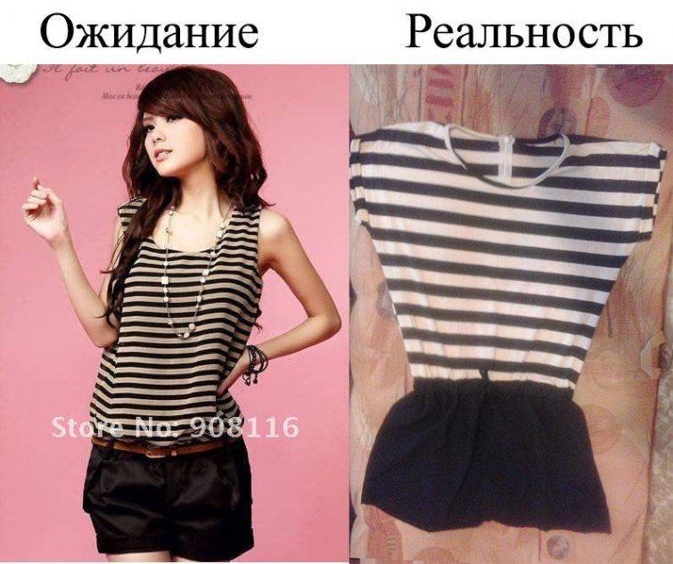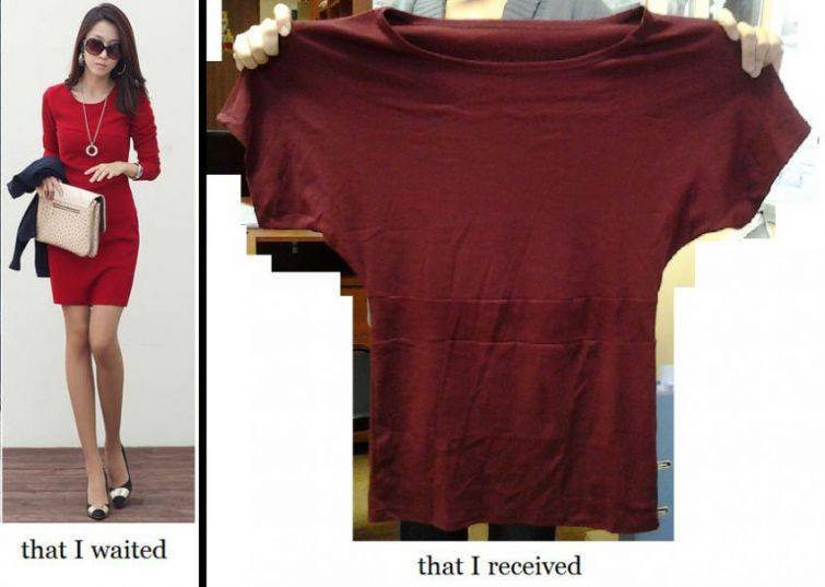Каждый, кто знаком с интернетом хотя бы раз обращал внимание на зарубежные сайты, предлагающие по довольно-таки демократичной цене приобрести шикарные на первый взгляд вещи. Увидев платье своей мечты, идеально сидящее на демонстрирующей его модели, вы тут же оформляете заказ и с нетерпением ждёте того дня, когда наконец сможете его примерить. И вот наступает «день X», вы со всех ног бежите на почту, чтобы забрать заветную коробочку, открываете её и… разочаровываетесь, потому что жестокая реальность совсем не совпала с вашими ожиданиями о заказанной вещи. Предлагаем вам взглянуть на людей, чьи вещи, заказанные из Китая, оказались вовсе непохожими на те, что они видели, когда оформляли свой заказ.
