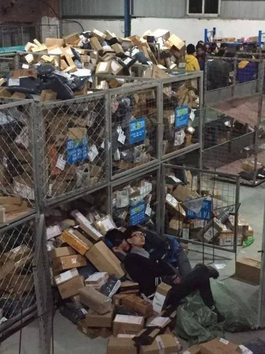 11 ноября китайцы отмечали День одиноких сердец (11.11 в дате одни единицы), однако, в этот день отмечается еще и Всемирный День шопинга, когда по всей стране проходят повальные распродажи. Работникам почты в эти дни не до праздника, так как в данный момент они просто завалены посылками. Предлагаем взглянуть на то, что сейчас творится в почтовых отделениях Китая.