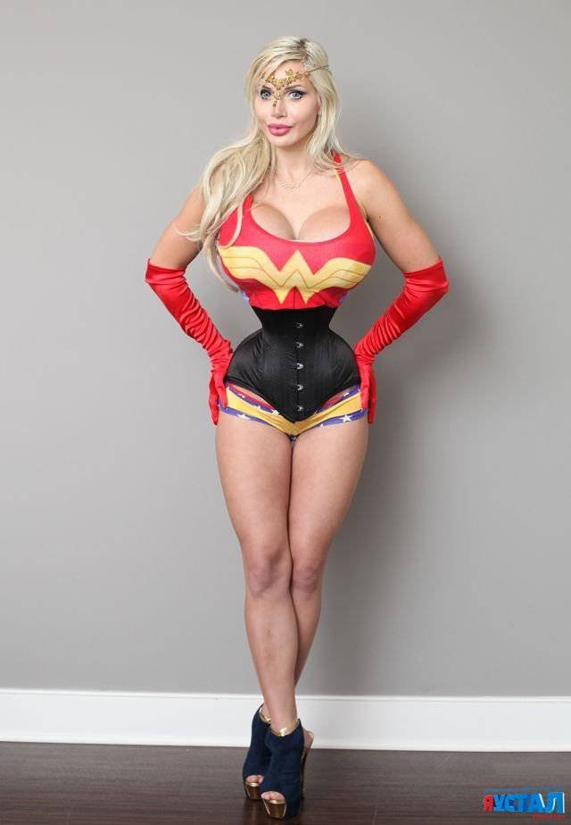 На многочисленные процедуры, среди которых числится удаление шести ребер, дама потратила практически 120 000 долларов США. Теперь барышня может похвастаться едва ли не самой узкой талией в мире, огромными титьками и жутким лицом.