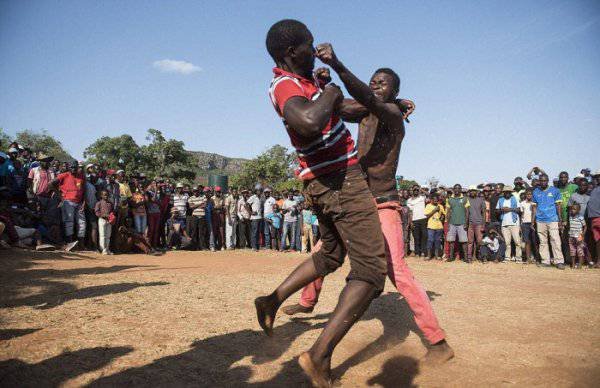 Каждый год в канун католического Рождества в деревне Габа, провинция Лимпопо, ЮАР, проводятся кулачные бои Мусангве, традиция которых была положена местным племенем венда. В кулачных боях, которые проводятся в формате турнира на вылет, принимают участие все желающие мальчики, подростки и мужчины. Бои продолжаются до тех пор, пока у одного из противников не появится кровь или до нокаута. Кроме того бой может быть остановлен, если один из соперников решит сдаться. Как проходят эти кулачные бои, нам расскажут фото с места события.