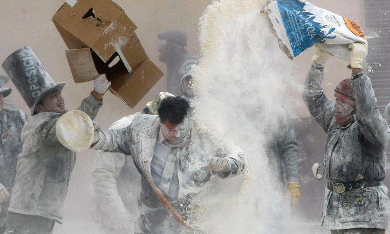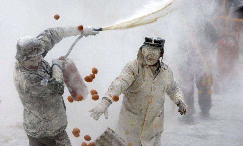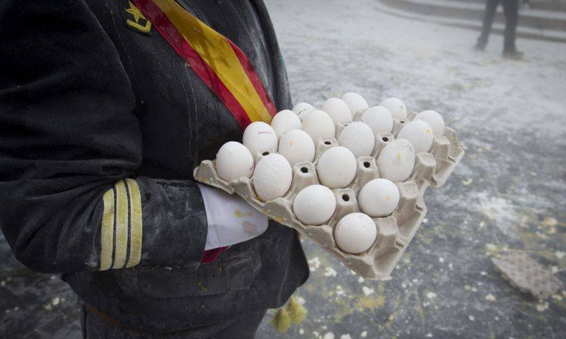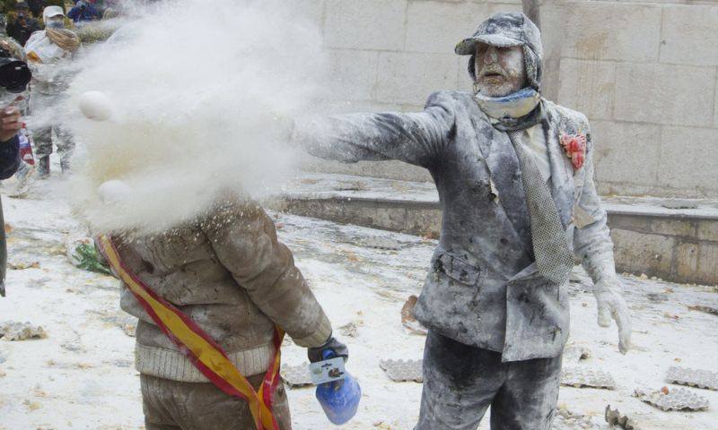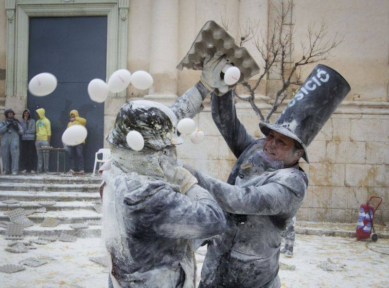28 декабря 2015 года в муниципалитете Иби, Испания, прошел праздник "Эльс Энфаринатс". Во время его празднования жители облачаются в дурацкие наряды и устраивают пожалуй одну из самых монументальных битв едой. В ход в основном идут яйца и мука, а также петарды для дополнительного задора.