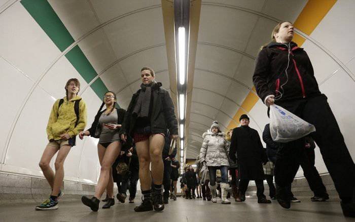 10 января в разных городах мира прошел флешмоб «В метро без штанов-2016» (No Pants Subway Ride), участники которого ехали в метро и в другом общественном транспорте в нижнем белье. Сняв штаны, юбки и платья, молодые люди ехали в общественном транспорте, делая вид, что ничего необычного не происходит. В Нью-Йорке во флешмобе, которому в этом году исполнилось 15 лет, приняло участие более 4 000 человек, они встретились в условленных местах и направились в Юнион-сквер. Всего во флешмобе участвовали 25 стран, включая Россию.