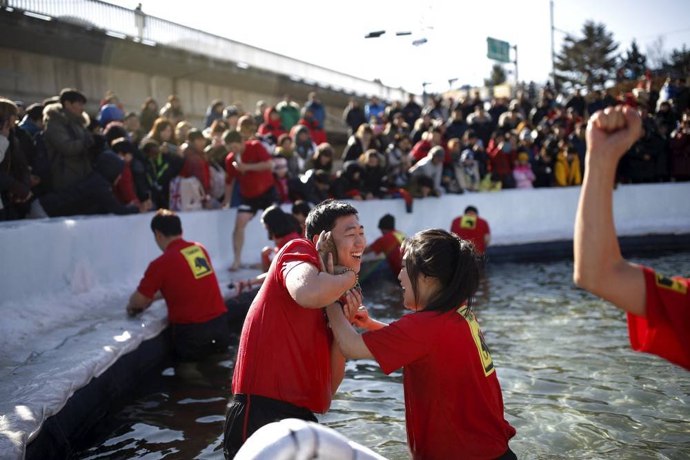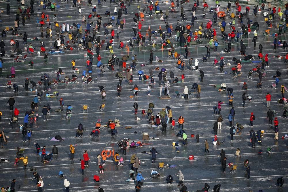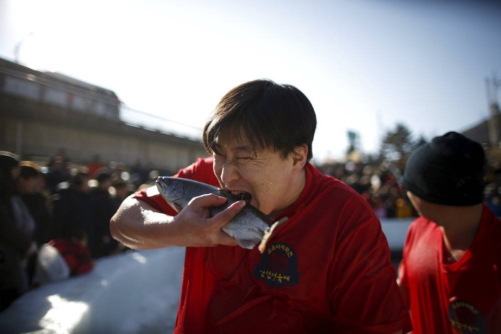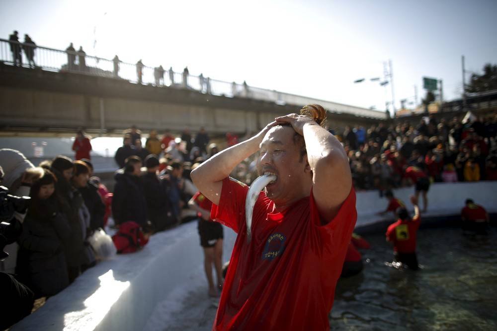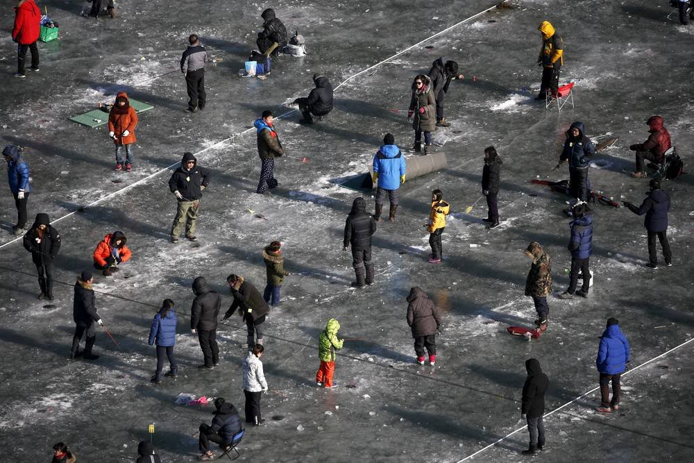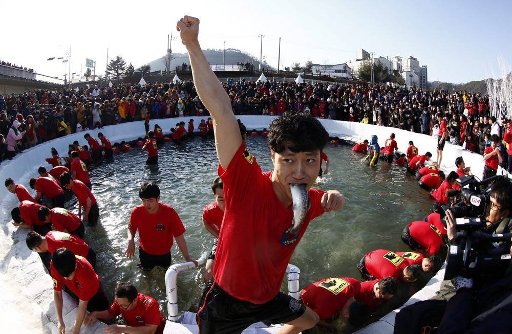 Множество участников собрались в Хвачхоне (провинция Канвондо) для участия в ежегодном ледяном фестивале ловли форели Hwacheon Sancheoneo Ice Festival. Фестиваль проходит с 09 по 31 января 2016 года к югу от демилитаризованной зоны (DMZ), разделяющей две Кореи. Главное событие на мероприятии — ловля форели, её ловят не только удочками, но и руками. Кроме рыбной ловли на фестивале есть и другие зимние развлечения: катание на санках, лыжах и коньках, лепка снеговиков, скоростной спуск по ледяным горкам и многое другое.