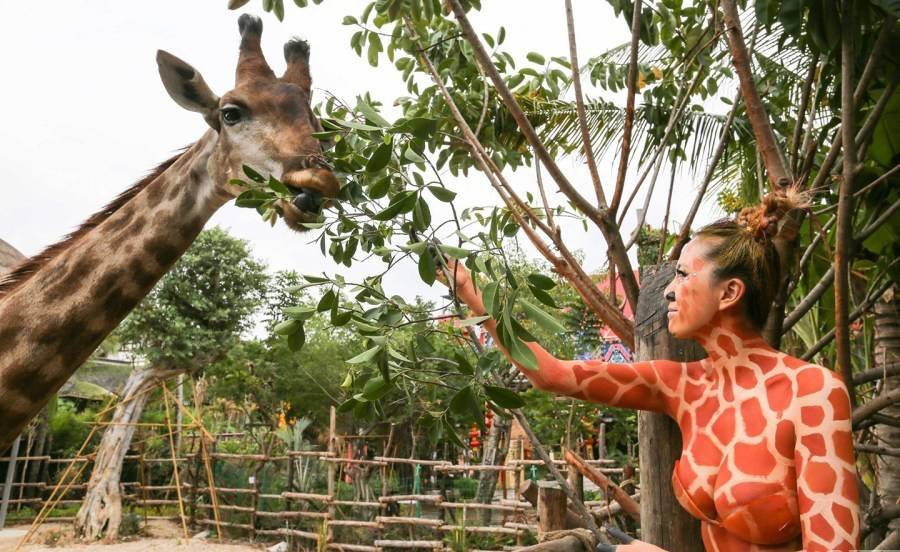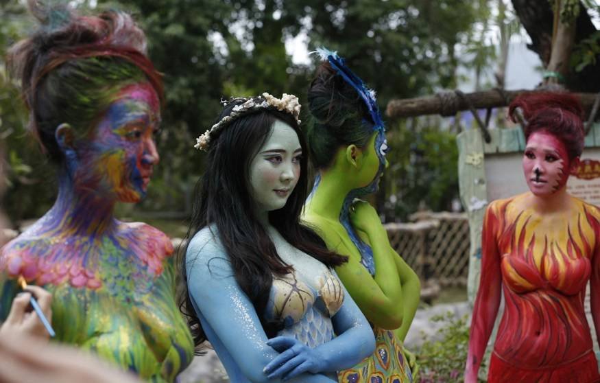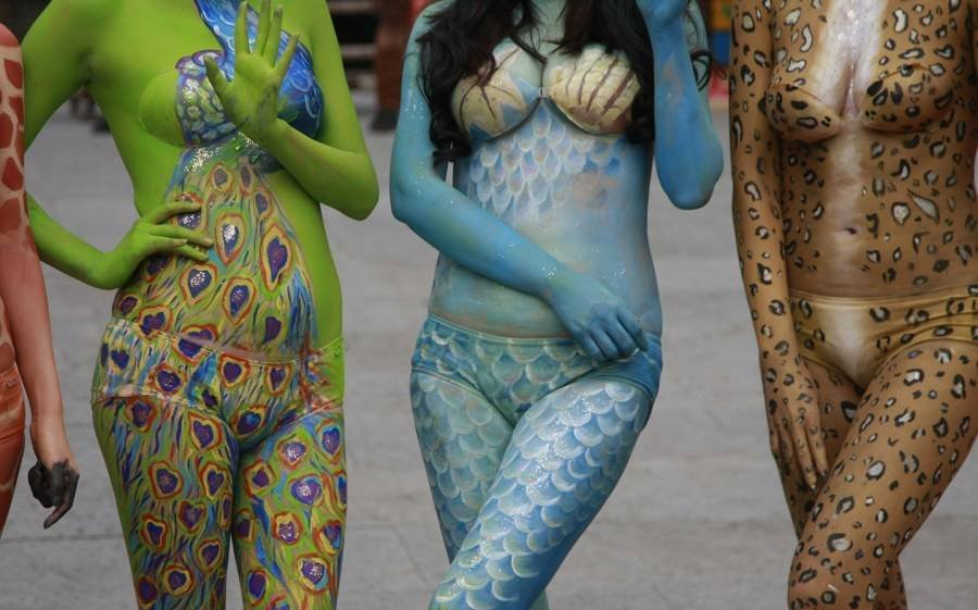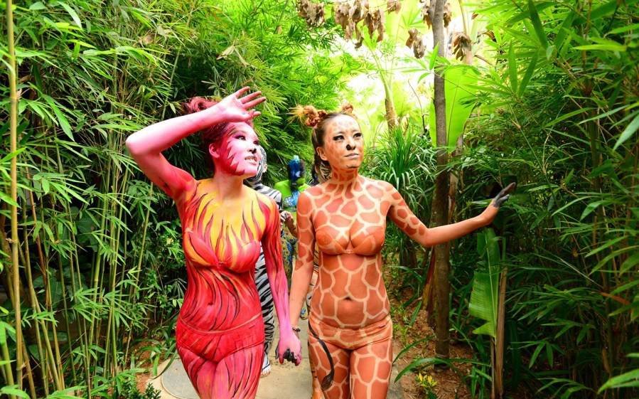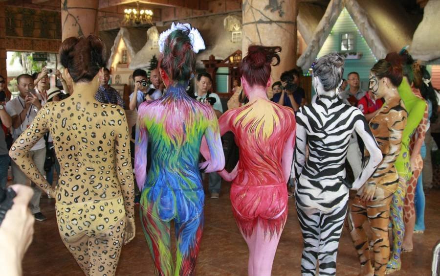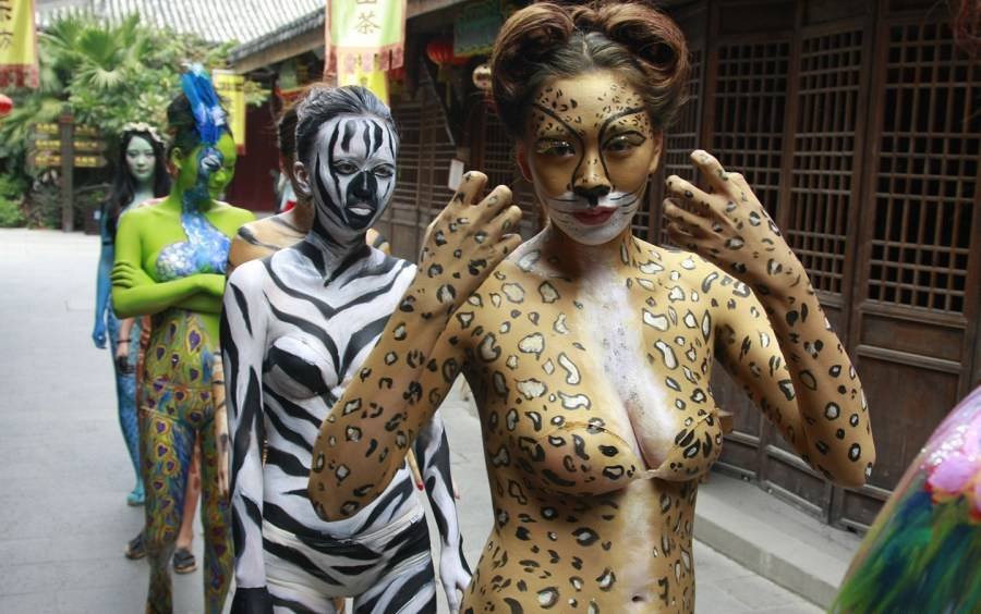 Китайские девушки-модели, разукрашенные под расцветку тигра, гепарда, зебры, павлина и других животных призывали к защите животных. Проходило это все в новом зоопарке в Санья, Южно-Китайской провинции Хайнань 10 января 2016 года. Посетители с удовольствием фотографировались с полуобнаженными моделями, вызывая зависть у пользователей интернета, живущих в Северном Китае и страдающих от холода.