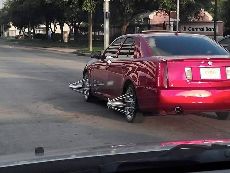 Каких только чудес тюнинга не повстречаешь на дорогах. Бывает обычную тачку так наворотят, что она выглядит как минимум глупо. В целом, я не противник подобных развлечений, пока они не касаются других участников движения. Искренне надеюсь, что такие вот колпаки на колесах – вне закона, и этому умнику впаяют изрядный штраф.