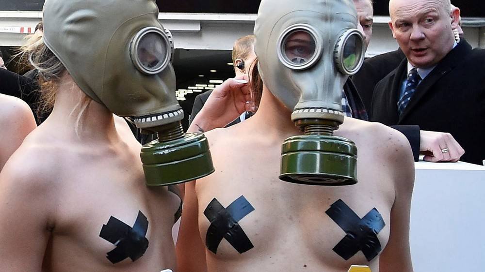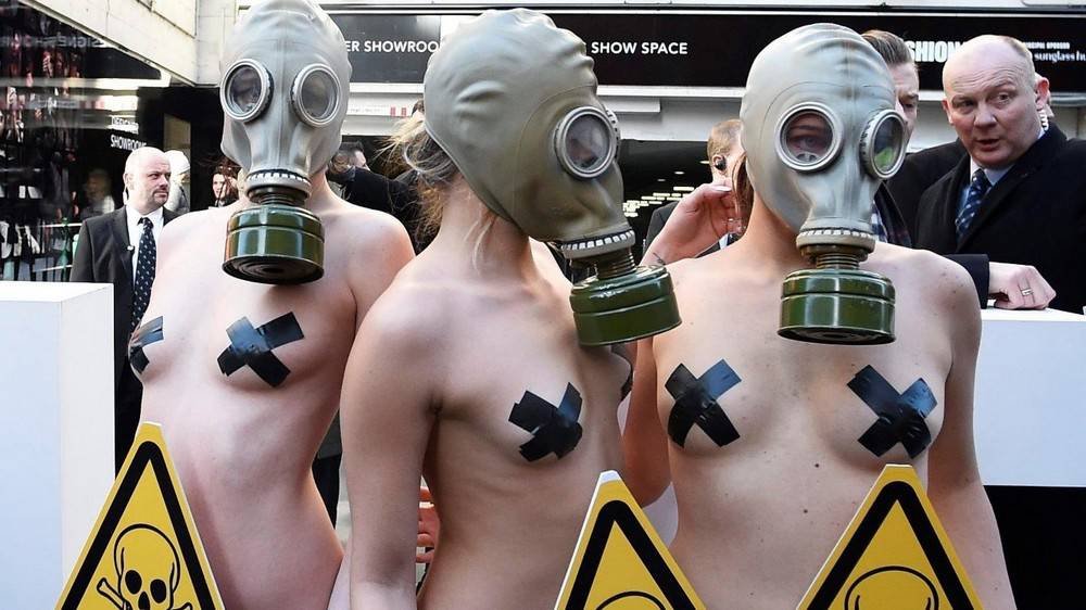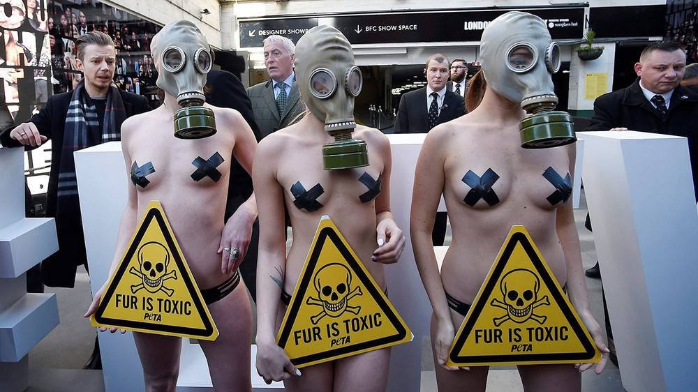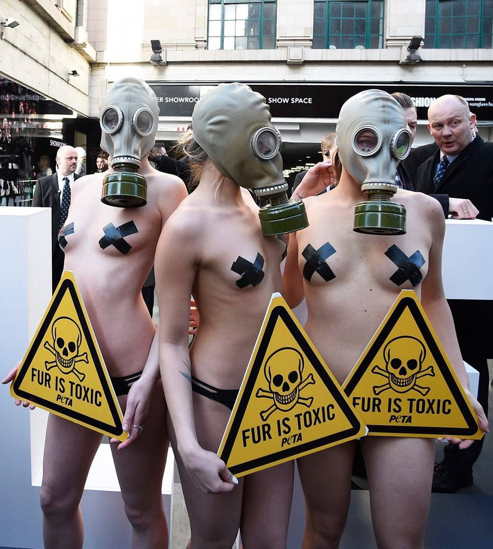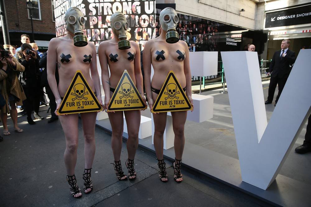 В пятницу 19 февраля 2016 года стартовал первый день London Fashion Week. В честь этого активисты из группы по защите животных PETA устроили полуобнаженный протест в противогазах. Они хотели напомнить, что использование одежды из меха и аксессуаров являются жестокими по отношению к животным и токсичными для человека.