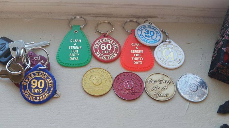 Алисса уже достаточно долго чиста, но остановиться не может:Символические медали из клуба анонимных наркоманов:Алисса с макияжем: