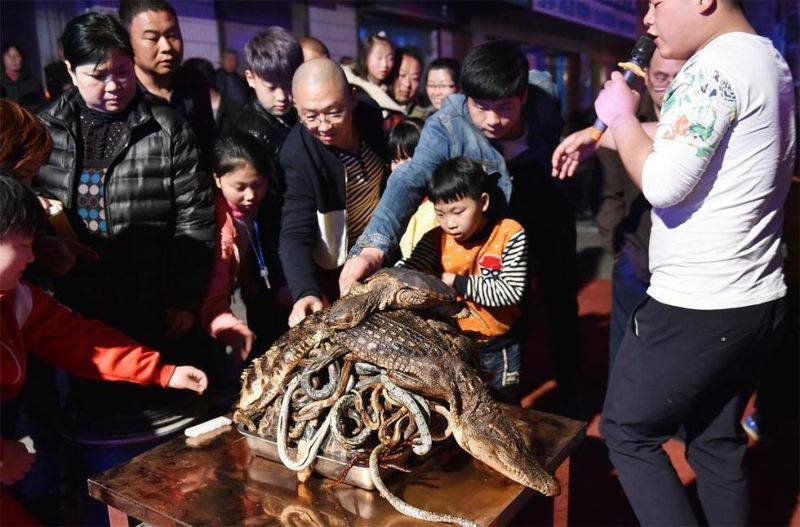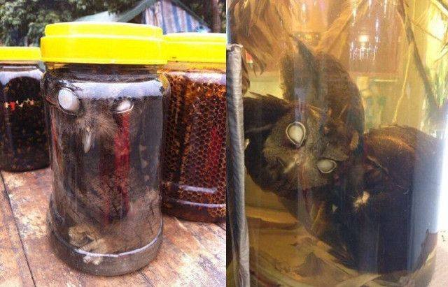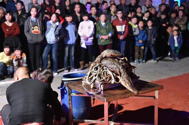 Китайские лекари способны исцелить любого страждущего всевозможными эликсирами. Этот знахарь, к примеру, готовит зелье из крокодилов, змей, черепах, куриц, грибов и всяких редких трав. Еще в списке чудодейственных препаратов значится вино из тигров и даже из сов.