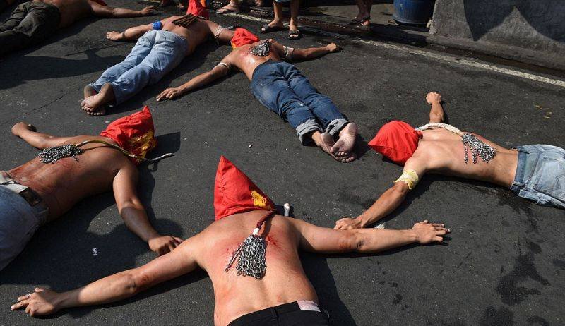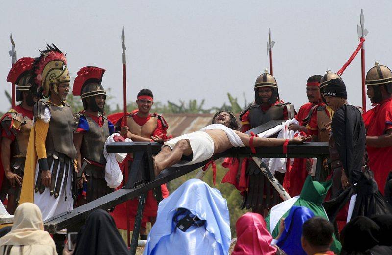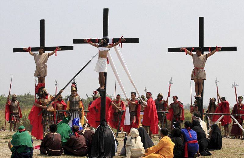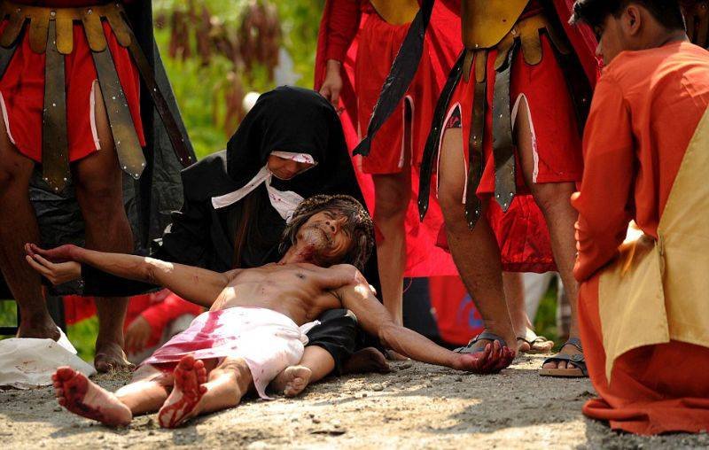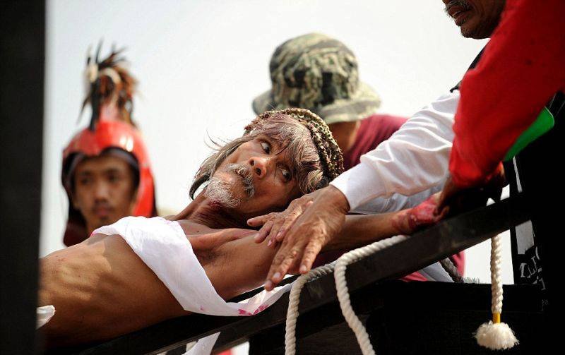 Филиппинцев прибили к крестам в честь наступающей пасхальной недели Запостил: Viking,28-03-2016, 09:38вС миру по нитке / Свежее Верующие на Филиппинах встречают пасхальную неделю с особенным рвением. Некоторые ходят по улицам, истязая себя плетьми, а другие идут еще дальше - позволяют себя приколотить к крестам. По-настоящему, гвоздями. Филиппинцев прибили к крестам в честь наступающей пасхальной недели Нравится 0 Не нравится 1 Комментарии (0) Добавить комментарий Прокомментировать Введите два слова с картинки: Отправить