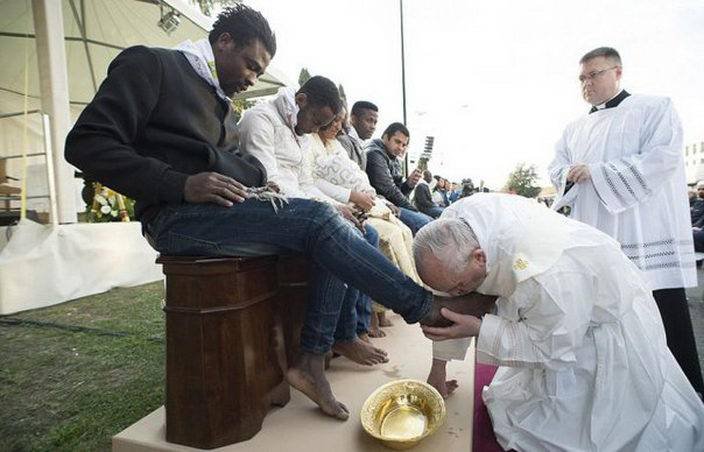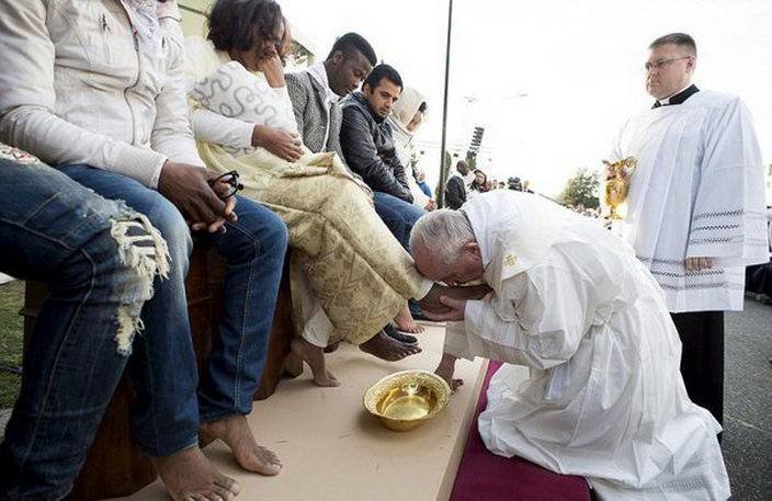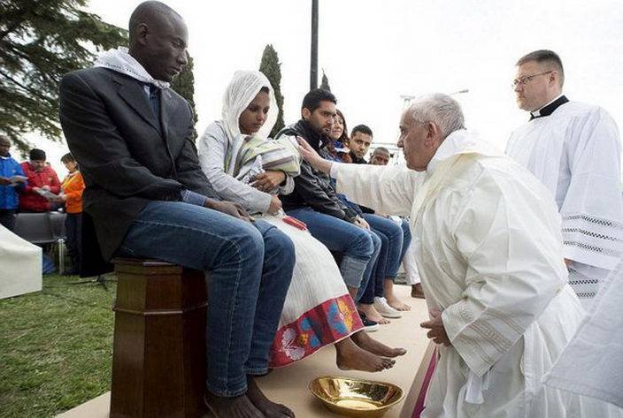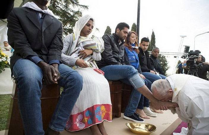 В Великий четверг Страстной недели Папа Римский Франциск провел обряд омовения ног в центре временного размещения беженцев в городе Кастельнуово-ди-Порто, расположенном неподалеку от Рима. Папа Франциск омыл и поцеловал ноги 11 беженцев и одной итальянки, после чего провел мессу Вечери Господней. Из 12 человек только пятеро были католиками, еще трое были мусульманами, трое - коптами и один - индус.