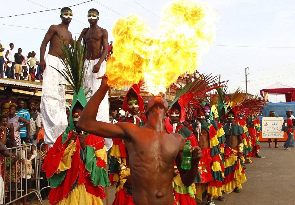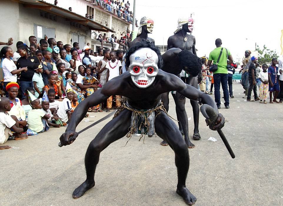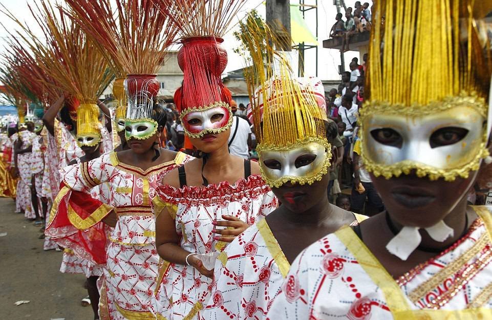 В Кот-д'Ивуар на востоке Абиджана проходит недельный карнавал, во время которого мужчины и женщины племени Aboure разыгрывают жестокие сцены из времен колониальной зависимости. Тогда страна была французским колониальным господством, эти удивительные фотографии показывают, как Ивуарийцы демонстрируют свою культуру в ежегодном карнавале Попо. Карнавал включает так же гастрономические конкурсы, спартакиады и фестиваль традиционных танцев. Это одно из самых посещаемых мероприятий в Кот д'Ивуар.