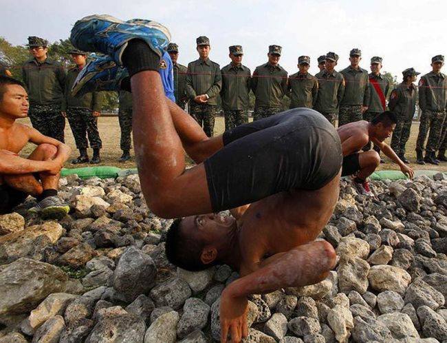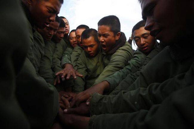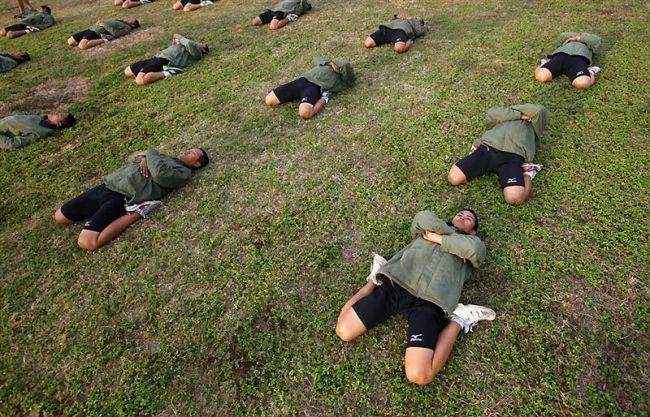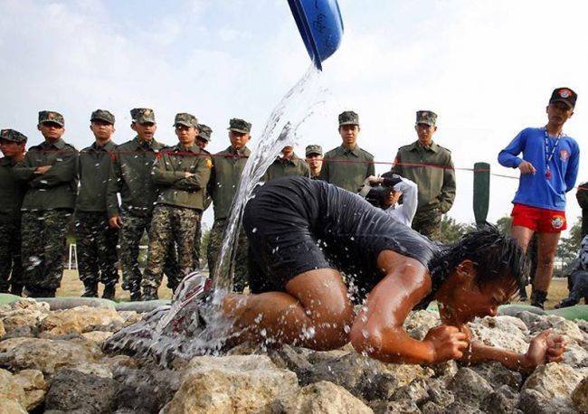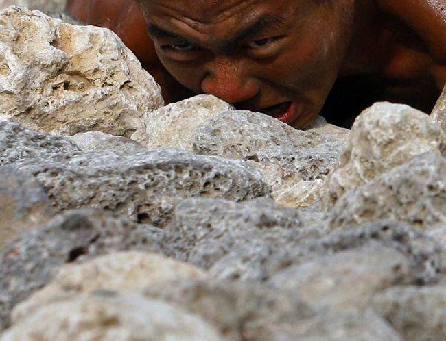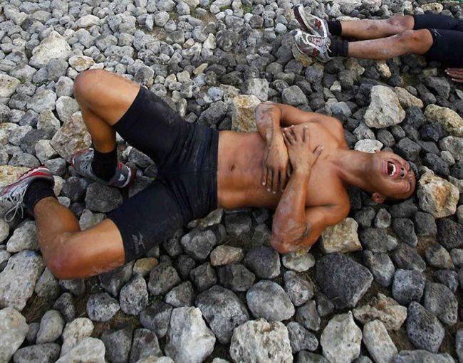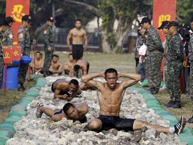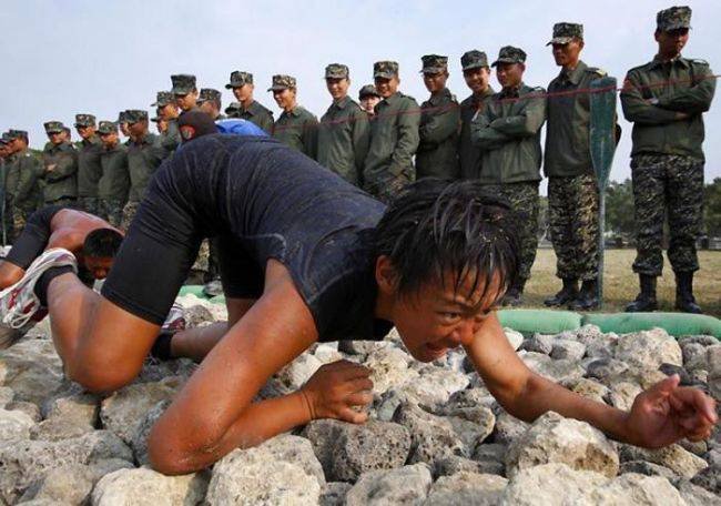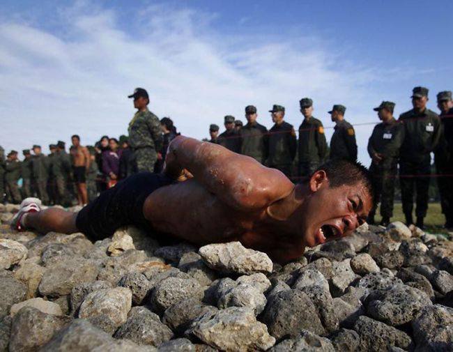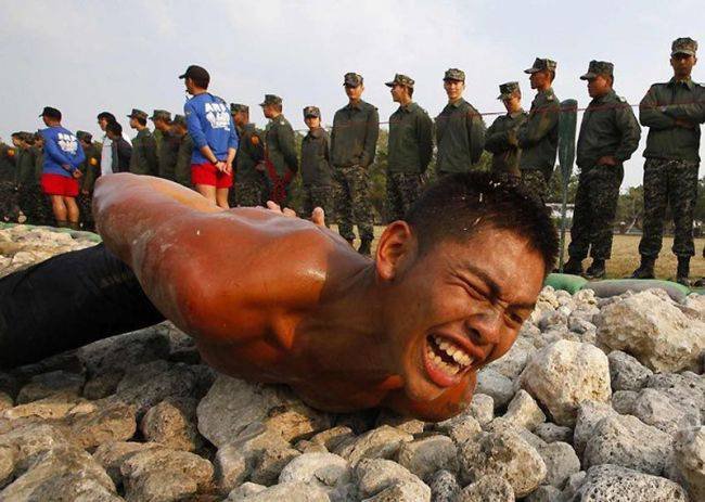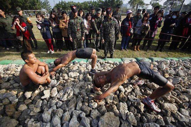 В этой небольшой подборке вы увидите очень эмоциональные фотографии, сделанные во время экзамена водолазов-разведчиков морской пехоты Тайваня. Экзамен под названием «Дорога в рай» включал выполнение упражнений и преодоление ползком 50-метровой полосы усыпанной острыми камнями и осколками кораллов. Главное: запрещено пользоваться руками. Пузом по камням. Только так. Через боль и не могу