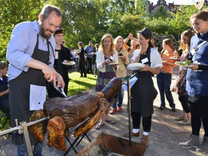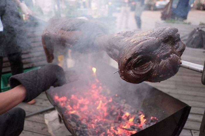 «Шашлык из инопланетянина» от шведских дизайнеров Запостил: Viking,21-04-2016, 09:17вС миру по нитке / Свежее Шведская студия дизайна из города Мальмё устроила пикник, на котором пожарили «шашлык из инопланетянина». На самом деле туша, которую жарили на вертеле, совсем не содержала мяса, так как изготовлена она была из вегетарианских продуктов. «Шашлык из инопланетянина» от шведских дизайнеров Нравится 0 Не нравится 1 Комментарии (0) Добавить комментарий Прокомментировать Введите два слова с картинки: Отправить