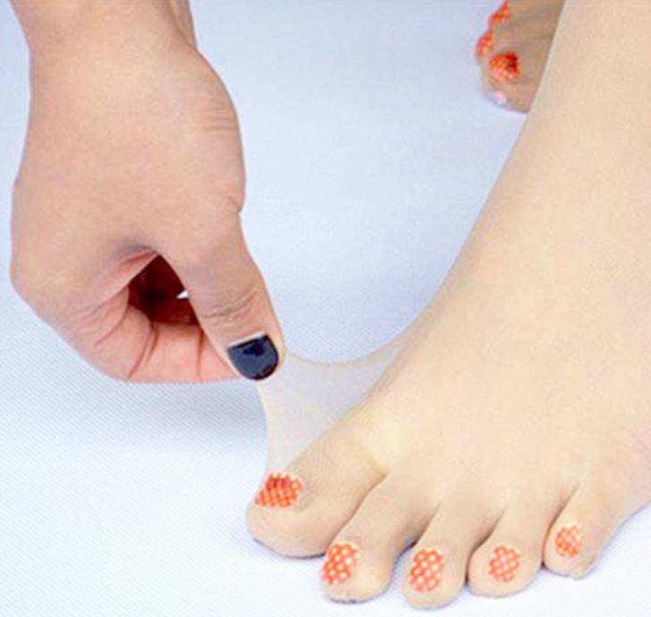 Красить ногти на ногах — занятие долгое и муторное. Японцы не заморачиваются: они придумали колготки с уже накрашенными ногтями. Японская фирма Belle Maison выпускает такие колготки в нескольких вариантах дизайна «ногтей», которые можно подобрать под любую одежду. И главное — почти не заметно, что это колготки, потому что пальцы отделены. Это и быстро, и красиво, и дешево. В общем, сплошные плюсы!