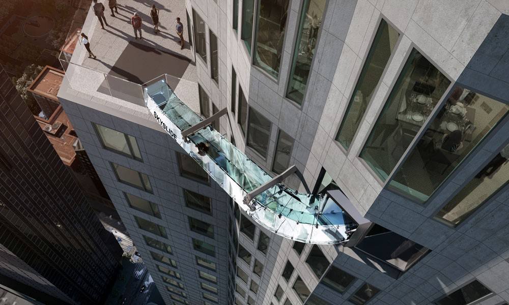 Каждый желающий может проехаться с 70 этажа небоскреба на предыдущий по 14-метровой трубе, которая выполнена из стекла толщиной в 3,2 сантиметра. Специалисты уверяют: эта конструкция выдержит и сильный ветер, и даже ураганы